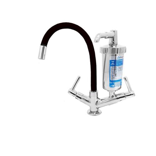 Desenvolvido com matéria de , a torneira com filtro colors preta 1/4 de volta é a opção ideal para quem procura qualidade para sua cozinha. Seu design moderno, traz um toque de requinte ao ambiente. Seu mecanismo cerâmico é 1/4 de volta, o que garante economia no uso de água proporcionando vazão na medida certa sem causar desperdício. Além disso, proporciona uma água saudável filtrada na hora, além de garantir uma praticidade maior comparado aos filtros convencionais. Fabricada em metal e abs cromado, possui alta resistência a riscos e corrosão. Dados técnicos - metal e abs cromado, inclusive acabamentos; - tubo flexível na cor preta. - copo do filtro em abs; - fixação na mesa; - certificações: inmetro; - acabamentos: c29 - garantia: 5 anos contra defeito de fabricação.
