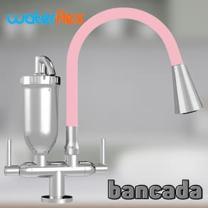 Possui Bica Alta Flexível modelo Gourmet com Arejador Duplo, o qual insere ar no jato de água aumentando a pressão e reduzindo o consumo.