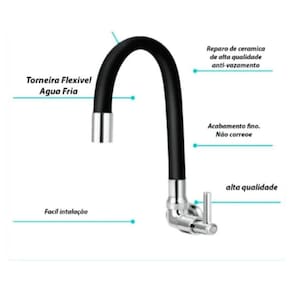 A Torneira Cozinha Preta Flexível apresenta arejador, podendo ser instalada em parede de 1/2 ou 3/4. Fabricada em metal cromado, possui alto padrão de qualidade e resistência, colaborando para a durabilidade do produto.
