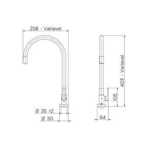 Dimensões e Peso do Produto: • Comprimento do produto:258,00 mm • Altura do produto:403,00 mm • Largura do produto:64,00 mm • Diâmetro do furo para instalação:25mm • Peso Líquido:1,003 kg • Peso Bruto:1,003 kg