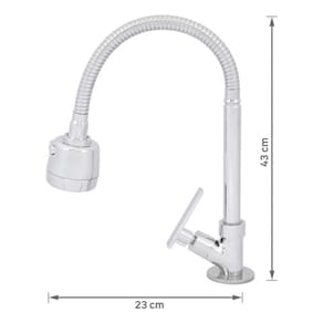 "Eleve o padrao de sua cozinha com a Torneira Gourmet Cozinha Bica Alta Flex Cromada Delinia. Com um design elegante e cromado, esta torneira e uma adicao sofisticada a qualquer espaco. Seu material de latao garante durabilidade e resistencia, proporcionando um produto de longa duracao. Com uma altura de 43 cm, largura de 23 cm e profundidade de 8 cm, ela e perfeitamente dimensionada para se encaixar em sua pia de cozinha.