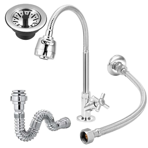 Torneira Gourmet Cozinha+Flexível+Válvula/Americana+Sifão Torneira Gourmet Cozinha+Flexível+Válvula/Americana+Sifão. Itens Inclusos: Torneira Cozinha Alavanca De Mesa Tubo Gourmet 1/4v DADOS TÉCNICOS - Feito em ABS plástico de engenharia com alta resistência e durabilidade . - Tubo Flexivel com dois jatos. - Mecanismo 1/4 de volta com pastilha cerâmica. - Pressão de água: 02 a 40 M.C.A. MEDIDAS - Altura: 35 cm - Profundidade: 26 - Tubo Flexivel: 50 cm Engate Aço Inox Flexível Trançado 1/2 40 Centímetros. Produto indispensável para a instalação de torneiras, o engate flexível é um equipamento que não pode faltar na cozinha,banheiro,Lavanderia da sua casa. Pensando nisso, este excelente modelo é uma ótima escolha para garantir o bom funcionamento de suas torneiras Utilizado para a ligação entre a rede hidráulica e a torneira, é produzido em aço inox, um material de grande resistência e durabilidade que confere alto padrão à peça. Por ser flexível, adapta-se a qualquer tipo de instalação. Válvula Americana para Pias Cubas e Tanques 3 1/2 em Aço Inox e Polipropileno. - Ela serve em furo de 7 a 9 cm. - Medida: Possui um diâmetro de 3 1/2 polegadas, o que é um tamanho padrão para válvulas de dreno em pias, cubas e tanques. - material: Fabricada em aço inox e polipropileno. O aço inox proporciona resistência à corrosão e durabilidade, enquanto o polipropileno oferece uma vedação eficaz e flexibilidade para o uso diário. Sifão Sanfonado/extensivo Universal Abs Cromado - Fácil instalação Dispensa o uso de ferramentas. - Suporta água quente e fria. - Peça única evitando vazamentos. - Diversas situações de entrada. - Fácil de retirar para limpeza. - Sifão aberto possui Comprimento 70 cm Adaptável às válvulas de 7/8, 1.1/4 e 1.1/2, com saídas de esgoto DN 38, 40, 48 e 50. - 03 meses de contra defeito de fabricação e mecanismo de vedação. Recomendações de Uso, Manutenção e Limpeza: Limpar a torneira apenas com um pano macio e sabão neutro. Não usar produtos abrasivos como: sapólio, palha de aço e produtos químicos. Marca: Não Informado Ean: 7893095294903