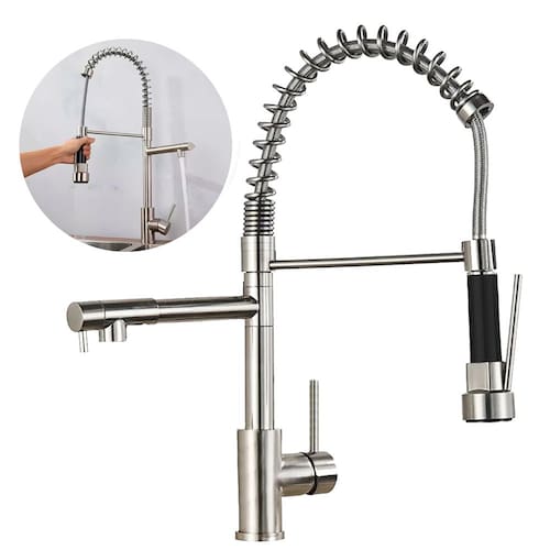ESPECIFICAÇÕES TÉCNICAS: Marca: BRINOVAR Cor: Prata Acabamento: Escovado Acetinado Material: Aço Inox 304 Modelo: 2 Saídas de Bancada Indicação: Cozinha / Espaços Gourmet / Ilhas / Churrasqueiras Instalação: Bancada / Pia Sistema: Monocomando Bica: Móvel e Giratória com rotação 360 graus Quantidade de Saídas de Água: 2, Torneira Ducha e Torneira para Filtro (filtro não incluso) Jato de água: Bica giratória aerado e Bica móvel ducha gourmet com acionamento através do botão Arejador: Sim Altura: 51 cm Largura: 4,5 cm Comprimento Total: 26,5 cm Temperatura Mínima da Água: 5° Celcius Temperatura Máxima da Água: 75° Celcius Utilização somente com água fria: Sim, necessário a utilização de adaptador 'T' (não incluso) Aquecedor Compatível com a Torneira: Elétrico, Solar e Gás (não incluso) Pressão Mínima da Água: 3mca (metros de coluna dágua) Pressão Máxima da Água: 40mca (metros de coluna dágua) Pressão Ideal da Água: Acima de 5mca (metros de coluna dágua) Cartucho: Cartucho cerâmico de alta durabilidade (500.000 ciclos) Perfuração da Bancada: 3,5 cm Rosca: 3 cm Garantia: 90 dias