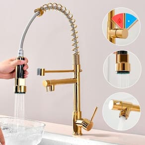 Torneira gourmet 2 saídas dourada brinovar O misturador monocomando para cozinha, é ideal para você que quer unir praticidade e conforto com modernidade e sofisticação em uma só torneira. Através de um fácil comando, mistura-se água quente e fria, o que facilita encontrar a temperatura ideal e aumenta a vida útil da torneira. Versátil, este produto pode ser apenas com água fria com a ajuda de uma conexão t na instalação . Especificações técnicas: Marca: brinovar Cor: dourado Acabamento: cromado brilhante Material: aço inox 304 Modelo: 2 saídas de bancada Indicação: cozinha / espaços gourmet / ilhas / churrasqueiras Instalação: bancada / pia Sistema: monocomando Bica: móvel e giratória com rotação 360 graus Quantidade de saídas de água: 2, torneira ducha e torneira para filtro filtro não incluso Jato de água: bica giratória aerado e bica móvel ducha gourmet com acionamento através do botão Arejador: sim Altura: 51 cm Largura: 4,5 cm Comprimento total: 26,5 cm Temperatura mínima da água: 5 celcius Temperatura máxima da água: 75 celcius Utilização somente com água fria: sim, necessário a utilização de adaptador 't' não incluso Aquecedor compatível com a torneira: elétrico, solar e gás não incluso Pressão mínima da água: 3mca metros de coluna dágua Pressão máxima da água: 40mca metros de coluna dágua Pressão ideal da água: acima de 5mca metros de coluna dágua Cartucho: cartucho cerâmico de alta durabilidade 500.000 ciclos Perfuração da bancada: 3,5 cm Rosca: 3 cm : 90 dias Atenção: o produto não acompanha filtro, apenas a torneira para o filtro Cuidados: Não use palha de aço, produtos químicos, não usar ácido muriático, água sanitária ou qualquer outro solvente para a limpeza. Limpe periodicamente o seu produto apenas com um pano macio, água e sabão neutro. Para manter o brilho do seu produto recomendamos o uso da pasta para polir e remover manchas em superfícies de aço inoxidável. Itens inclusos: Torneira monocomando 2 saídas Mangueira flexível de aço trançado 50cm para ligação de água quente e fria Sistema de fixação Anéis de vedação Marca: Não Informado
