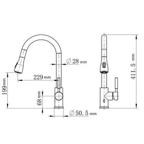 Torneira Gourmet Com Ducha de Puxar Extensível 50cm Redonda Monocromática Para Cozinha com Giro 360°
