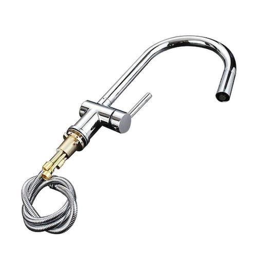 Torneira gourmet com instalação na mesa, composta por Aço inox. Possuindo uma ducha flexivel de longo alcance para atingir os lugares com mais precisão, com opções de concentrado e spray.