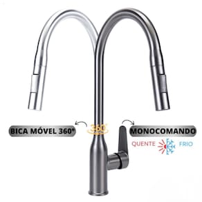 Monocomando: Permite ajustar a temperatura da água entre quente e fria com apenas uma alavanca. Bica Giratória 360: Ideal para pias e bancadas, proporcionando maior praticidade. Ducha Extensível: Estende até 50 cm, permitindo o fácil manuseio em tarefas diárias. Modos de Jato: Dois modos de jato jato areado e ducha para uma limpeza eficiente e economia de água. Aerador: Reduz respingos e proporciona um fluxo mais suave.