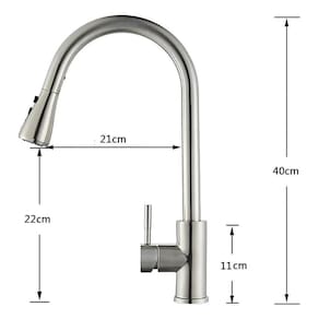 Torneira gourmet de aço inoxidável com 40 cm de altura, acabamento cromado resistente a corrosão, volante de alavanca para abertura e fechamento suaves, e movimento de 360 graus para direcionar o jato d'água. Marca: Não Informado