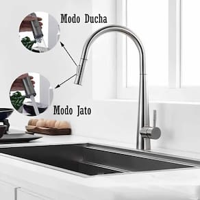 Torneira Gourmet Para Cozinha Bancada Pia de Alta Qualidade Premium Luxo Função Misturador Monocomando Bico Extensível Flexível Material Aço Inox