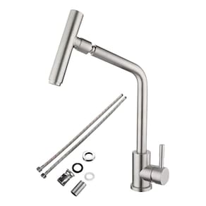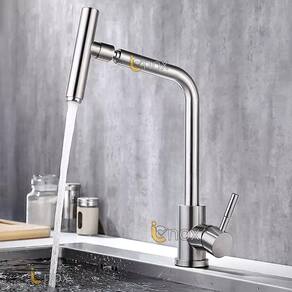 Torneira Monocomando, em Aço Inox c/ acabamento Escovado. Com haste e bico 360º.