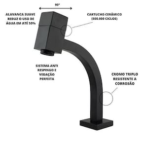 Características: Torneira para banheiro de mesa link quadrada 45º 1/4 de volta baixa preta fosca - altura total: 23 cm - altura da queda d'água: 14,5 cm - comprimento: 17 cm - largura: 4,5 cm - 1/4 volta: sim - acabamento: cromado - material: latão - cartucho: cerâmica - efeito de queda: jato - modelo: link quadrada - pressão mínima: 4 m.C.A. - pressão máxima: 40 m.C.A. - furo: 20 mm - abertura: controle gradual - bitola: padrão 1/2 - arejador: para economia de água Medidas - altura: 22,0cm - altura da bica: 10,0cm Itens inclusos -torneira - peças para fixação Ficha técnica- Largura da torneira da cuba: n/a- Comprimento do chuveiro de mão: n/a- Comprimento da torneira da banheira: 14 cm- Lugares de colocação: Cuba- Tipo de punho: Quadrado- Altura da torneira da banheira: 22 cm- Fonte do produto: 1- Largura da torneira do bidê: n/a- Tipo de montagem: De mesa- Com chuveiro de mão: Não- Com temporizador de fechamento automático: Não- Com pico extensível: Não- É misturador: Não- Comprimento do chuveiro: n/a- Acessórios incluídos: Acessórios para fixação- Com luzes: Não- Quantidade de furos: 1- Com torneira flexível: Não- Acabamento: Cromo- Com aerador: Sim- Diâmetro do furo de instalação: 1/2- Materiais: Latão- Tipo de fechamento da torneira: Cerâmico- Tipo de controle da torneira: Monocomando- Cor principal: Preto- Largura da torneira da banheira: n/a- Modelo detalhado: Latão Triplo Cromado- Altura da torneira da cuba: 22 cm- Comprimento da torneira da cuba: 14 cm- Cor: Preto Fosco- É produto giratório: Não- Pressão máxima de água: 40