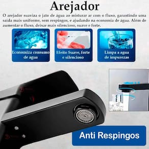 Arejador Econômico e Eficiente: Mistura ar à água para suavizar o jato, reduzindo respingos, tornando o uso mais silencioso e aumentando a economia de água – sem comprometer a performance.