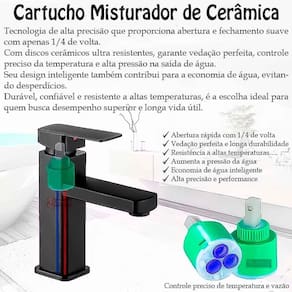 Cartucho Cerâmico de 35mm: Garante vedação perfeita, controle preciso da temperatura e fluxo contínuo mesmo em locais com baixa pressão. Conta com discos cerâmicos ultra resistentes, projetados para suportar altas temperaturas com o mínimo de desgaste.