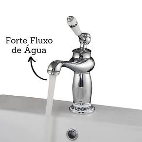 Torneira Lavabo Prata Com Porcelana Monocomando Retrô Luxo