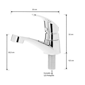-marca: alpha hidrometais -instalação: de bancada/mesa -mecanismo de abertura: fecho rápido -tipo: alavanca 1/4 de volta (economia de água) -bitola entrada água: 1/2 polegada (padrão comum em torneiras) -material: abs cromado (plástico de engenharia com alta resistência e durabilidade)