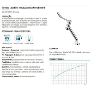 tecnologias: 1/4 de volta, acabamento biníquel, cartucho com vedação cerâmica, garantia toda vida