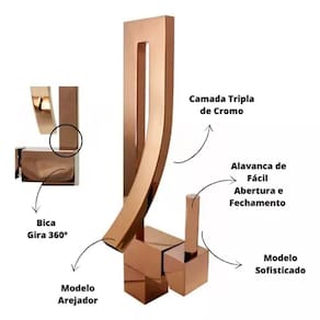Misturador Monocomando estilo cascata para lavatório de mesa. Possui o corpo em latão cromado de altíssima qualidade, antioxidante e anticorrosivo. Possui três camadas de revestimento. Possui cartucho cerâmico que pode durar mais de 600.000 vezes que um cartucho comum. Inclui todos os acessórios para instalação.