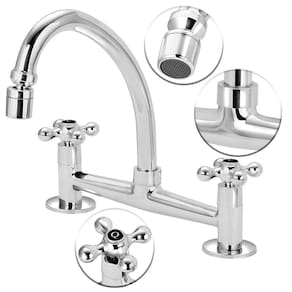 Torneira Misturador Cozinha Mesa Arejador Articulado 1/4v. C/33 Cor: Prateado Torneira Misturador Cozinha Arejador Articulado 1/4v é indicado para instalação em Pia Mesa. Este misturador duplo comando oferece para a sua cozinha beleza e requinte, fabricado em metal cromado de alto padrão de qualidade, apresenta maior durabilidade e resistência aos processos de corrosão e oxidação, manifestações comuns em locais com umidade. Trazendo modernidade e elegância para o ambiente. Com 2 comandos independentes, possibilita controlar a vazão, misturando água quente e fria com conforto e facilidade, conta ainda com bica móvel e arejador articulado otimizando muito o seu uso. Um produto inovador de alta qualidade. Mecanismo de vedação cerâmico. 1/4 de volta. Rapidez no acionamento e fechamento, proporcionando economia de água. Além disso, permite a utilização de cuba dupla. Temperatura máxima de 70 c. - Material - Metal - Tipo de Bica - Bica móvel com arejador articulado. - Mecanismo de Vedação Cerâmica - Compatível com sistema de aquecimento Sim - Composição - Latão - Altura Bica - Alta - Pressão Máxima - 40 m - Pressão mínima - 2 m Todos os nosso misturadores possui Medida padrão de 20,5 cm de centro a centro. E para conexão de parede possui o excêntrico para pequenos ajustes. 19 a 21,5 ele atende. MEDIDAS - Altura total 25 cm - Altura da saida de agua ate os comando de abrir e fechar é de 14 cm - Profundidade 18 cm - 90 dias de contra defeito de fabricação e mecanismo de vedação. Recomendações de Uso, Manutenção e Limpeza Limpar apenas com pano macio e sabão neutro. Não usar produtos abrasivos como sapólio, palha de aço e produtos químicos. Marca: Não Informado