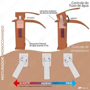 Através de um fácil comando, mistura-se água quente e fria, o que facilita encontrar a temperatura ideal e aumenta a vida útil da torneira. Versátil, este produto pode ser usado apenas com água fria (com a ajuda de uma conexão T na instalação).