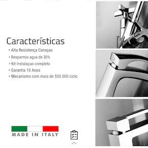 Torneira importada da Itália, com peças de reposição no Brasil.