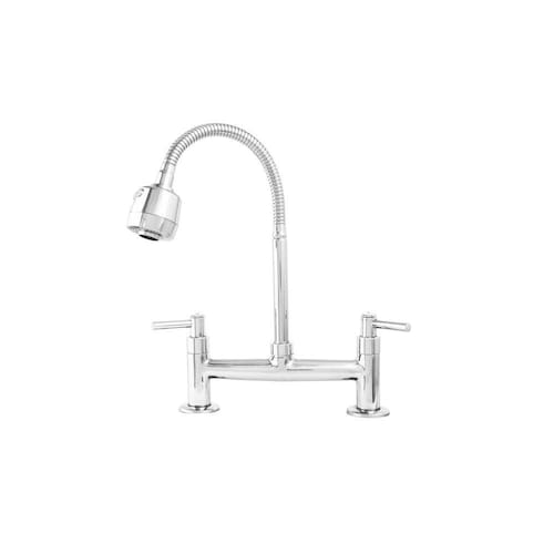 Misturador água quente e fria para cozinha Aplicação: Bancada Bica móvel gourmet Dimensão furo: 1/2" Distância entre as furos: 21cm  Toda em metal cromado  Sistema de vedação: cerâmico 1/4 de volta Acabamento: alavanca Garantia 1 ano