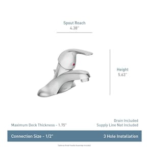 Moen WS84503 Adler Torneira de banheiro de arco baixo de uma manípula, cromada