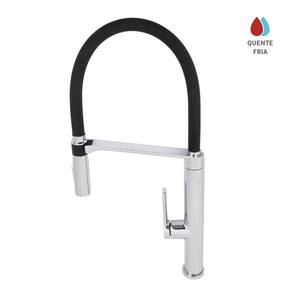 Misturador Monocomando Docol DOC para Cozinha, na elegante cor preta e acabamento polido cromado, ele combina design criativo com funcionalidade avançada, oferecendo controle de temperatura e fluxo de água através de uma única alavanca.