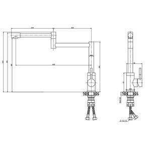 - Bitola: ½ - Bica articulável 360º - Temperatura máxima da água: 70º C - jato direcionado. - Mínimo de 5 M.C.A - Fixação bancada/mesa - Cor: Aço Escovado - Itens inclusos: 01 Torneira; 02 flexíveis para entrada de água fria e quente e acessórios para fixação na base. - Furo de instalação: 3,5 cm - Medidas vide foto