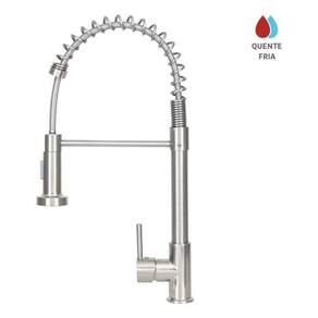 Elegante e funcional, esta torneira monocomando gourmet e ideal para cozinhas modernas, oferecendo facilidade e eficiencia no uso diario. Com bica alta e flexivel, permite um giro de 360o, facilitando o manuseio e alcancando toda a extensao da pia. A torneira apresenta acabamento em inox escovado, proporcionando durabilidade e resistencia, alem de adicionar um toque sofisticado ao ambiente. O acionamento e feito por uma alavanca de 1/4 de volta, que garante controle preciso da temperatura da agua, tanto quente quanto fria. Inclui um chuveirinho com jato d'agua versatil, ideal para diferentes usos, e um arejador fixo que ajuda a economizar agua. Com design pratico e dimensoes de 45x25x8 cm, adapta-se perfeitamente a diversos estilos de pias e bancadas. A instalacao e simples, compativel com furos de 3 polegadas. A torneira nao possui filtro de agua nem saida para agua filtrada, focando na simplicidade e eficiencia. Com de 10 anos, e uma escolha de longa duracao para sua cozinha.