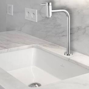 Durável, com mecanismo de vedação cerâmico 1/4 de volta para 350.000 ciclos. Economiza até 80% de água com arejador Neoperl, que evita respingos. Bica giratória e volantes em metal para sofisticação.