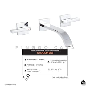 O Misturador Duplo Comando de Parede Caxambu da Pingoo.casa, une praticidade e conforto.