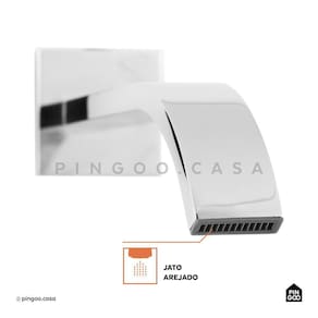 A torneira possui acabamento cromado, com triplo de alta resistência à corrosão, além do fluxo de água em cascata, que proporciona uma experiência relaxante e elegância no banheiro.