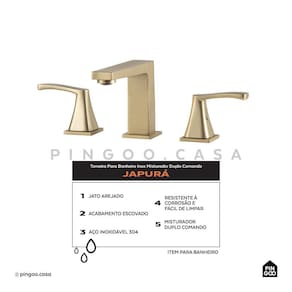 Torneira Para Banheiro Inox Misturador Duplo Comando Japurá Par de flexíveis de aço trançado Anéis de Vedação Sistema de fixação