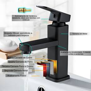 Descrição A Torneira Preta Para Lavabo Monocomando Aço Inox é a escolha ideal para quem busca elegância e funcionalidade em ambientes de banheiro. Com um design moderno e sofisticado, este modelo FC-138 se destaca pela sua versatilidade, podendo ser instalado em cubas, pias, banheiras e lavabos, adaptando-se perfeitamente ao seu espaço.Fabricada em aço inox, a torneira oferece durabilidade e resistência, garantindo um produto de alta qualidade para o seu banheiro. O controle monocomando proporciona facilidade no manuseio, permitindo ajustar a temperatura e o fluxo de água com apenas uma mão, tornando o uso mais prático e eficiente.Com uma única furação, a instalação é simplificada, ideal para quem busca um produto que una estética e funcionalidade. A cor preta traz um toque contemporâneo, combinando com diferentes estilos de decoração e proporcionando um visual clean e sofisticado.Esta torneira funciona apenas com água friaSim, este modelo foi desenvolvido especificamente para uso com água friaO acabamento preto fosco é resistente a manchas e riscosSim, o acabamento é projetado para ser resistente a manchas e riscos, mantendo a aparência sofisticada por mais tempo.A instalação é compatível com qualquer tipo de cubaEsta torneira é ideal para cubas de apoio e embutidas. Recomenda-se verificar as dimensões e especificações da cuba para garantir a compatibilidade. É necessário contratar um profissional para a instalaçãoA instalação é simples e pode ser realizada sem a necessidade de um profissional. No entanto, se você não possui experiência em instalações hidráulicas, é aconselhável buscar auxílio especializado.Esta torneira possui garantiaSim, o produto acompanha garantia do fabricante contra defeitos de fabricaçãoFicha Técnica:- Altura Total do Produto: 17 cm- Largura: 4 cm- Profundidade: 16 cm- Mecanismo | registro: ¼ de volta- Peso: 0.641 kg- Material Do Corpo: Aço Inoxidável- Pressão Mínima Para Funcionamento: MCA 4- Pressão Máxima Para Funcionamento: MCA 40- Vazão Mínima Para Funcionamento (L/min): 4- Vazão Máxima Para Funcionamento (L/min): 13- Arejador (Bica Fixa): Com Arejador Embutido- Acabamento: Preto Fosco- Área Indicada: Banheiro | Bancada | Mesa
