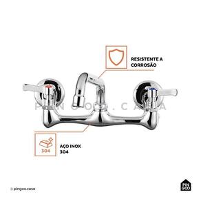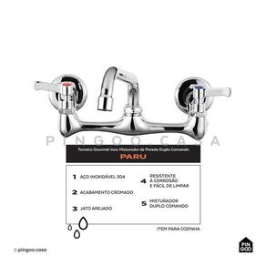 1 Torneira Para Cozinha Gourmet Inox Misturador de Parede Duplo Comando Paru