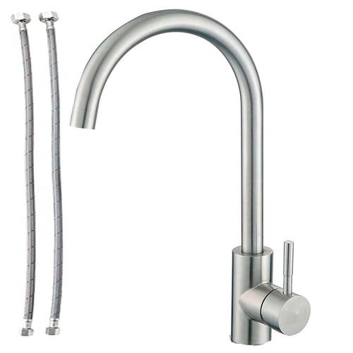 A Torneira Gourmet para Cozinha com Misturador é 100 fabricada em Aço Inoxidável garantindo resistência aos processos de corrosão e oxidação muito comuns em ambientes úmidos Além disso preserva o Brilho do acabamento em Aço Escovado por muito mais tempo