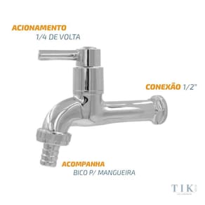 Produto: Torneira Para Tanque ABS 1/4 de Volta; Material: ABS Cromado Brilhante; Conexão: 1/2; Instalação: Parede; Acionamento: 1/4 de Volta; Temperatura: 0°C - 50°C; Pressão Mínima: 2 MCA - 50 MCA; Marca: Tik de Casa; Garantia: 12 Meses;