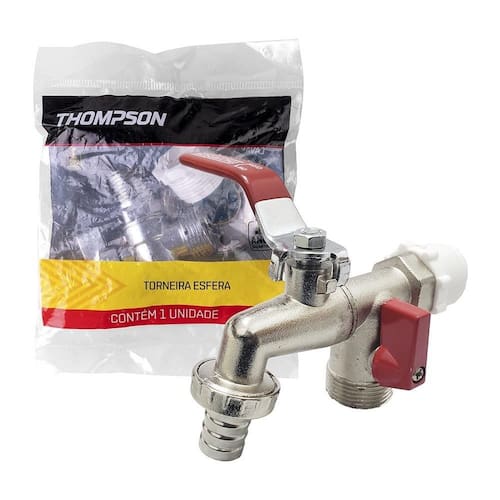 Características Principais: Cor: Prata Marca: Thompson Material: Liga metálica Função: Controlar o fluxo de água em sistemas hidráulicos. Bitola: 1/2"x3/4"x3/4"