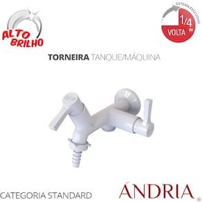 MODELO – Com duas saídas Linha: Ándria Fixação: De Parede Bica: Reta Abertura: ¼ de Volta Uso: Lavanderia
