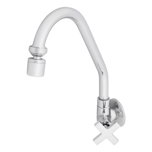 Resumo das caracteristicas e especificacoes: - Marca: Delinia - Produto: Torneira - Local Indicado: Parede - Comodo Indicado: Cozinha - Temperatura da Agua: Fria - Bica: Alta - Mobilidade da Bica: 360o - Tipo do Jato de Agua: Comum - Acionamento: Cruzeta - Acompanha Arejador: Sim - Mobilidade do Arejador: Fixo - Altura: 22cm - Largura: 20cm - Profundidade: 15cm - Pressao de Funcionamento: 3 a 40 mca - Cor: Cromado - Material: Metal - Linha: Campinas - Garantia do Fabricante: 120 meses." Marca: Não Informado