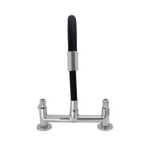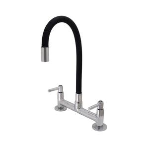 Torneira Pia Cozinha Misturador Gourmet Mesa Flexível Preto Fosco 1/4 VoltaDesenvolvido com material primeira de qualidade, o Misturador para Cozinha água quente e fria é a opção ideal para quem busca um modelo com design tradicional e com muito glamour. O sistema de comando duplo possui dois volantes: um para água quente e outro para água fria. Permitirá que você escolha a temperatura de forma prática e simples, sendo que o usuário controla a vazão de água e controla a mistura de água quente com água fria.Fabricado em latão, possui alta resistência a riscos e corrosões. Além disso, toda a linha luxo possui um design moderno o que a torna um bonito objeto decorativo, trazendo um toque de requinte e sofisticação para sua cozinha. Este misturador possui mecanismo 1/4 de volta cerâmico, que ajuda a reduzir o consumo de água, aumentando a rapidez de abertura e fechamento.Para manutenção e limpeza usar apenas pano macio e sabão neutro. Não usar produtos abrasivos como sapólio, palha de aço e produtos químicos.DADOS TÉCNICOS:- Shophidraulica- Material; Corpo Metal; Volante ABS - Mecanismo : 1/4 de volta- Posição de instalação: Mesa - Bitola: 1/2- Distância do furo para instalação: 20cm- Pressão Mín.: 4 m.C.A - Pressão Máx.: 40 m.C.A- Vazão Mín.: 4 l/m- Vazão Máx.: 16 l/m - Suporta até 70º C de temperatura- Tubo Flexível- Arejador : SIM- Certificação: PBQP-H- Garantia: 5 anos defeito de fabricação Marca: Shophidraulica