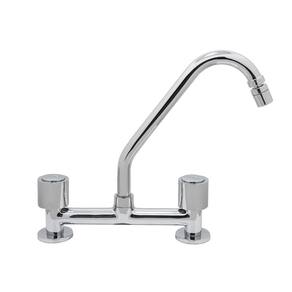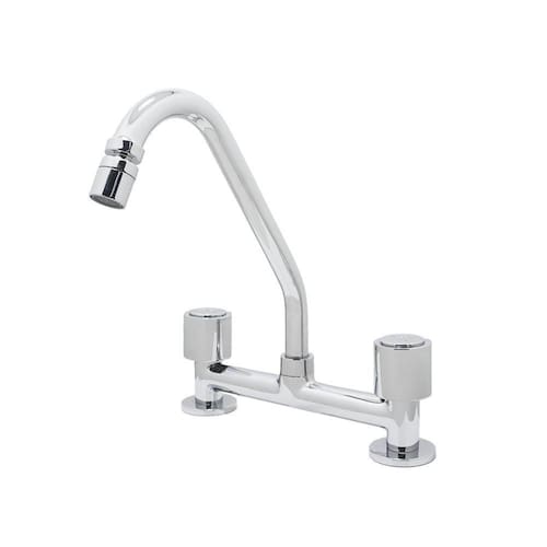 Torneira Pia Misturador Cozinha Bancada Luxo Cromado 1/4 VoltaDesenvolvido com material primeira de qualidade, o Misturador para Cozinha água quente e fria é a opção ideal para quem busca um modelo com design tradicional e com muito glamour. O sistema de comando duplo possui dois volantes: um para água quente e outro para água fria. Permitirá que você escolha a temperatura de forma prática e simples, sendo que o usuário controla a vazão de água e controla a mistura de água quente com água fria.Fabricado em latão, possui alta resistência a riscos e corrosões. Além disso, toda a linha luxo possui um design moderno o que a torna um bonito objeto decorativo, trazendo um toque de requinte e sofisticação para sua cozinha. Este misturador possui mecanismo 1/4 de volta cerâmico, que ajuda a reduzir o consumo de água, aumentando a rapidez de abertura e fechamento.Para manutenção e limpeza usar apenas pano macio e sabão neutro. Não usar produtos abrasivos como sapólio, palha de aço e produtos químicos.DADOS TÉCNICOS:- Shophidraulica- Material; Corpo Metal; Volante Metal- Mecanismo : 1/4 de volta- Posição de instalação: Mesa- Bitola: 1/2- Distância do furo para instalação: 20 cm- Pressão Mín.: 2 m.C.A - Pressão Máx.: 40 m.C.A- Vazão Mín.: 4 l/m- Vazão Máx.: 16 l/m - Suporta até 70º C de temperatura- Tubo Bica Móvel com arejador articulado móvel - Certificação: PBQP-H- Garantia: 5 anos defeito de fabricação Marca: Shophidraulica