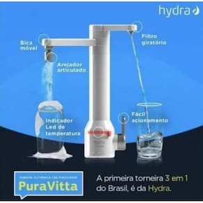 Torneira Puravitta Bancada Eletrica Filtro 127v 5500w Hydra Apresentamos a Torneira Puravitta Bancada Elétrica com Filtro 127V 5500W da HYDRA Descrição do Produto: A Torneira Puravitta da HYDRA é a solução perfeita para quem busca praticidade e eficiência na cozinha. Com um design moderno e funcional, esta torneira combina tecnologia de ponta com conforto, oferecendo água filtrada e aquecida instantaneamente. Ideal para quem valoriza qualidade e inovação. Benefícios e Características Principais: Água Filtrada e Aquecida: Sistema de filtragem integrado que garante água limpa e saudável a qualquer momento. Eficiência Energética: Potência de 5500W que aquece a água rapidamente, economizando tempo e energia. Design Compacto: Perfeita para instalação em bancadas, ocupando pouco espaço e proporcionando um visual elegante. Fácil Controle de Temperatura: Ajuste a temperatura da água conforme sua necessidade, garantindo conforto e segurança. Especificações Técnicas: Marca: HYDRA Potência: 5500W Voltagem: 127V Dimensões: Largura 20,00 cm x Altura 10,00 cm x Profundidade 40,00 cm Peso Líquido: 1,000 kg GTIN/EAN: 7896650422384 Itens Inclusos: Torneira Puravitta Bancada Elétrica Manual de Instruções Kit de Instalação : 3 meses contra defeitos de fabricação Observação: Imagens meramente ilustrativas Por que escolher a Torneira Puravitta da HYDRA Marca: Não Informado