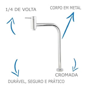 O seu banheiro merece o melhor nos mínimos detalhes, e é isso que você dará a ele com esta linda torneira. Além de deixar este cômodo mais bonito, garantirá sua higiene com muito mais praticidade e rapidez. Desenvolvido com um material de grande resistência e durabilidade que confere alto padrão à peça, recebe um belíssimo acabamento cromado que dá um toque de requinte e elegância ao produto. Tudo isso com acionamento de 1/4 de volta, tornando seu uso mais funcional e agradável.