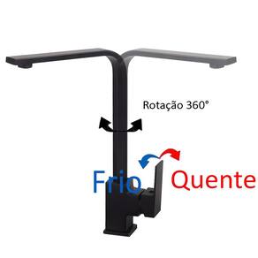 Torneira Gourmet Quadrada Monocromática Preta Para Cozinha com Giro 360°