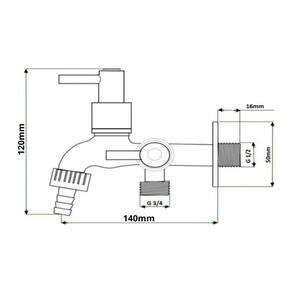 Torneira tanque máquina 2 saídas abs cromado parede 1/4 de volta