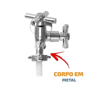 Acionamento com apenas 1/4 de volta, maior controle sobre o consumo da água; Bico para mangueira incluso, é só encaixar e utilizar; Saída para conectar a máquina de lavar, com apenas uma torneira você faz dois tipos de uso; Conexão de 1/2, padrão na maioria dos locais; Super leve e resistente, não enferruja e não mancha; Tamanho minimalista, não atrapalha o uso no tanque;
