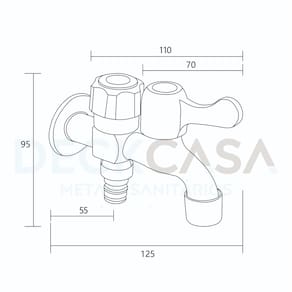 - 2 saídas de água- Acionamento: ¼ de volta (cartucho cerâmico)- Bitola: ½- Mínimo de 2 M.C.A (baixa pressão)- Fixação: Parede- Itens inclusos: 01 Torneira - Medidas vide foto
