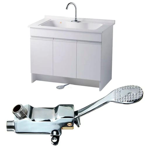 Com ela, é possível higienizar as mãos e lavar objetos sem a necessidade de tocar na válvula. Basta acionar a torneira com o pedal que a água será liberada. Ao retirar o pé do pedal, o fluxo de água para automaticamente.