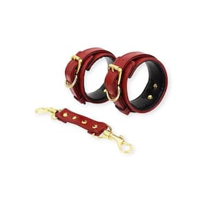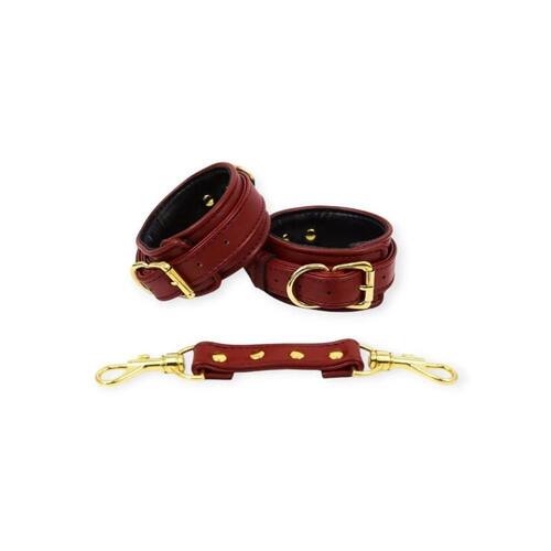 Tornozeleira de Metal Vinho com Detalhes Dourados - Coleção Lovetoys - Feitas em poliuretano com aspecto visual semelhante ao couro, perfeitas para uma noite de dominação! Resistente, com fecho de fivela, ajustáveis, podem ser utilizadas por homens e mulheres. Dê asas á sua imaginação.